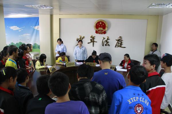 少年法庭开放日组织学生模拟开庭 在广西高级人民法院“争创五个一百”活动表彰大会上,贺州市八步区人民法院未成年人案件综合审判庭被授予2013年度全区法院“先进集体”的光荣称号。 自2012年12月25日成立以来,该院未成年人案件综合审判庭作为广西首创,以“改革创新年”为契机,在原少年合议庭、少年法庭的基础上,大胆创新,锐意进取,不断建立健全各项工作机制,摸索出了一套“以审判为中心,以帮教为重点、以防范为己任”的审判新路子,取得了良好的法律效果和社会效果。由于工作突出,成绩显著,该院未成年人案件综合审判庭在2013年还先后荣获“全国维护妇女儿童权益先进集体”荣誉称号、“自治区妇女儿童维权岗”荣誉称号。 “以审判为中心”,保障妇女儿童维护自身合法权益 为最大限度地维护未成年人及妇女儿童的合法权益,在贺州市中级人民法院的大力指导和支持下,八步区人民法院大胆创新,于2012年12月25日成立了广西首个独立建制的“未成年人案件综合审判庭”,对贺州市未成年人案件实行集中管辖。新成立的“未成年人案件综合审判庭”不仅受理本辖区内的被告人为未成年人的刑事案件、涉及未成年人权益的民事案件、当事人为未成年人的行政案件,还受理贺州市中级人民法院指定管辖的原由钟山县、昭平县、富川瑶族自治县法院审理的未成年被告人的刑事案件。2013年5月,院党组决定,将暴力侵害妇女儿童的刑事案件也转入未成年人案件综合审判庭审理,扎实推进未成年人审判及妇女儿童维权工作走向专业化、系统化、制度化。 立足审判职能,切实维护未成年人的合法权益。对全市未成年人刑事案件集中行使审判权,做到“同案同判”,实现量刑均衡,对维护未成年人的合法权益起到了至关重要的作用。2013年,未成年人案件综合审判庭共受理各类案件118件156人,审结117件155人,法定审限内结案率为100%。受理案件118件156人中,未成年人刑事案件96件129人(其中八步区及平桂管理区未成年人刑事案件66件93人,钟山县未成年人刑事案件13件15人,富川县未成年人刑事案件13件15人,昭平县未成年人刑事案件4件6人),妇女儿童维权刑事案13件18人,涉及未成年人权益民事案件9件9人,尚无行政涉少案件。已审结的未成年人案件无一错案,无一上访信访,已释放的未成年犯无一重新犯罪。这标志着贺州市八步区人民法院未成年人审判工作朝着科学化、规范化、人性化的方向迈出了坚实的步伐。 整合司法资源,切实维护妇女儿童的合法权益。为有效整合司法资源,未成年人案件综合审判庭除审理未成年刑事案件外,还审理猥亵妇女儿童、拐卖妇女儿童等侵犯妇女儿童权益的刑事案件。2013年,该庭共受理妇女儿童维权刑事案件13件18人,审结13件18人,结案率为100%。在审理妇女儿童维权案件时,该庭始终做到法理相融,将维护妇女儿童权益放在首位。具体做法为:一是与妇联结对共建“妇女儿童维权岗”。该庭立足审判职能,逐步拓宽妇女儿童维权载体,与八步区妇联结对共建“妇女儿童维权岗”,制定了妇女儿童维权岗工作制度,严格妇女儿童维权案件审理方式,不断将妇女儿童维权工作引向深入。二是严办暴力侵害妇女儿童权益的犯罪案件。该庭对暴力侵害妇女儿童权益的犯罪案件,始终保持“高压”态势,严惩不贷,坚持“三个及时”原则,即“及时立案、及时审理、及时判决”,为妇女儿童维权构筑了牢固的司法防线。三是有序开展被害人的安抚救助工作。该庭在严办暴力侵害妇女儿童权益犯罪案件的同时,及时做好被害人的安抚工作,积极与被害的妇女儿童进行沟通交谈,消除被害人的恐惧心理,引导被害人走出阴影,树立信心,勇敢面对生活,实现了法律效果与社会效果的有机统一。2013年,共对12名受到暴力侵害的妇女儿童开展了救助工作。 “以帮教为重点”,多举措办好未成年人案件审判工作 未成年人案件综合审判庭根据未成年人案件办理流程,设定不同诉讼阶段即立案受理、庭前准备、法庭审理、宣告判决、判决生效、刑满释放等六个可以开展帮教活动的环节,对涉罪未成年人开展“帮教一体化”工作,以最大限度地巩固判决效果,最终实现减少、预防未成年人犯罪的目的。 送达“致家长的一封信”, 指导家庭教育。未成年被告人大多数出身于家长文化水平低,家庭生活条件差,或对子女娇生惯养的家庭。为此,未成年人案件综合审判庭的法官针对每个家庭的不同情况,在送达起诉书副本时向未成年被告人释法说理,庭前询问法定代理人,了解未成年被告人的成长经历、兴趣爱好及犯罪诱因,并向其送上“致未成年被告人家长的一封信”,引导家长切实担负起监管之责,给孩子创造一个宽松、健康的成长环境。同时也希望通过家长与法官的共同努力,一起引领未成年被告人重新树立生活信心,增强守法意识,以阳光的心态重归社会。2013年,共向56个案件的73名家长送达了“致家长的一封信”,家长收到信后,均表示受到了不同程度的启发,成效明显。 建立“合适成年人”制度,维护特殊未成年被告人权益。据统计,法定代理人不能、不愿或没有法定代理人参加刑事诉讼的未成年被告人占10%。为避免未成年被告人陷入焦虑和恐惧,未成年人案件综合审判庭在八步区法院探索建立了“合适成年人”制度,联合社会力量,邀请人大、妇联、团委工作人员