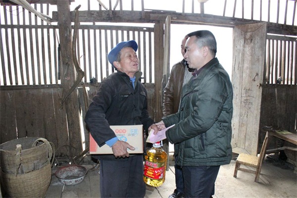 图为闭克武(右)把慰问品送到困难老党员手中。 本网讯(覃毛) 1月20日,寒流来袭,细雨绵绵,冬日的山区阴冷萧瑟。广西都安瑶族自治县人民法院党组书记、院长闭克武一行行走在下坳镇隆洞村泥泞难行的村道上,前往困难老党员蓝善高和黄胜陆的家中慰问。 隆洞村距都安县城82公里,距乡政府所在地30公里,现有农户154户,交通极为不便,自然环境十分恶劣,是都安县最为贫困的山村之一,也是都安法院的帮扶对象。由于该村地处深山老弄,发展缓慢,文化落后,导致该村整村十分贫困。村中青壮年大都外出务工,隆洞村的一些老人成了留守老人。 老党员蓝善高和老母亲就是其中的留守老人,家中有4口人,至今还住在木楼中。得知蓝善高家的困难,闭克武一行带上食用油和面条等慰问品来到蓝善高家中慰问,给蓝善高带去慰问金。 “谢谢法院领导来看我,虽然天气寒冷,但是心却是暖的,谢谢…….”,蓝善高接过慰问品,双手紧握闭克武的手连声感谢。 当天,闭克武一行还慰问走访了渔洞村其他2位困难老党员,并分别送去慰问品。 一直以来,都安法院都在为隆洞村贫困户如何脱贫作努力。通过派出干警担任该村驻村第一书记,进村入户热心帮扶群众的同时,还给村民宣讲法律知识,化解纠纷。都安法院的团支部还从2012年开始,根据隆洞村小学孩子们的实际需要,号召全体干警给孩子们捐钱捐物,帮助该村的留守儿童。接下来,都安法院将加大对隆洞村的帮扶力度,并结合精准扶贫工作为隆洞村脱贫致富出谋划策。 责任编辑: