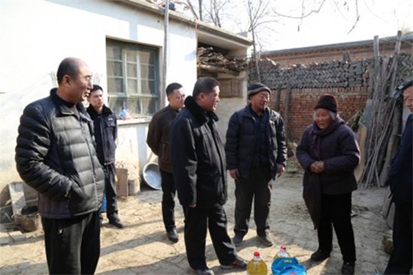 图为刘伟一行慰问困难党员群众。 本网讯(王希玉 韩飞) 新春佳节来临之际,山东省阳谷县人民法院党组副书记刘伟、政治处主任赵树峰、工会主席王凤鸣、驻村第一书记杨宏志前往该院“双联共建”村高庙王镇三官庙村,看望和慰问了6户老党员和五保户,给他们送去了党的温暖和节日祝福。 每到一处,慰问组都送上慰问品,详细询问老党员和五保户的健康状况、生活情况和思想动态,亲切地询问他们的饮食起居和家庭情况,嘱咐老人要注意适时添衣保暖、保重身体。受慰问的党员群众纷纷表示,感谢党组织和法院对他们的关心与爱护。 责任编辑: